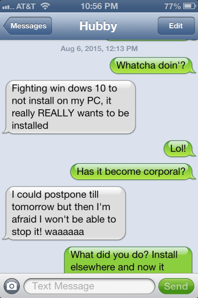 This one is from a few months ago, as DH was installing Windows 10 (he’s among the brave early adopters).