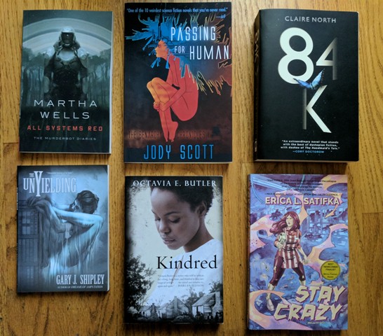 And, finally, plenty of sci-fi and dark/weird fiction that I have yet to read, but am optimistic. I hadn’t read Octavia Butler’s classic Kindred before, which is a shame, but there you have it. Claire North is one of my favorite writers (her book The First Fifteen Lives of Harry August is among my all-time faves) and I’m looking forward to what she’s got in store this time with 84K. Passing for Human is hilarious as cutting satire. Stay Crazy won a top British award. All Systems Red is part 1 of a series. The Unyielding is a body horror novella that drew me in based on its premise.